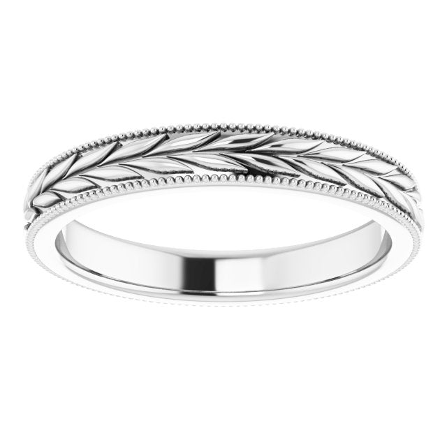 18K White 3 mm Milgrain Edge Wheat Pattern Flat Band Size 7