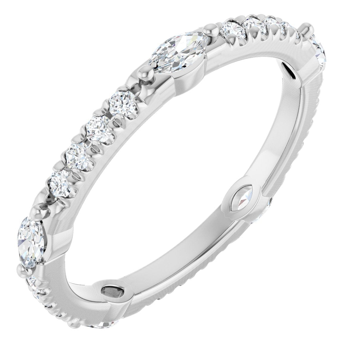 14K White 1/3 CTW Natural Diamond Floral Eternity Band Size 7