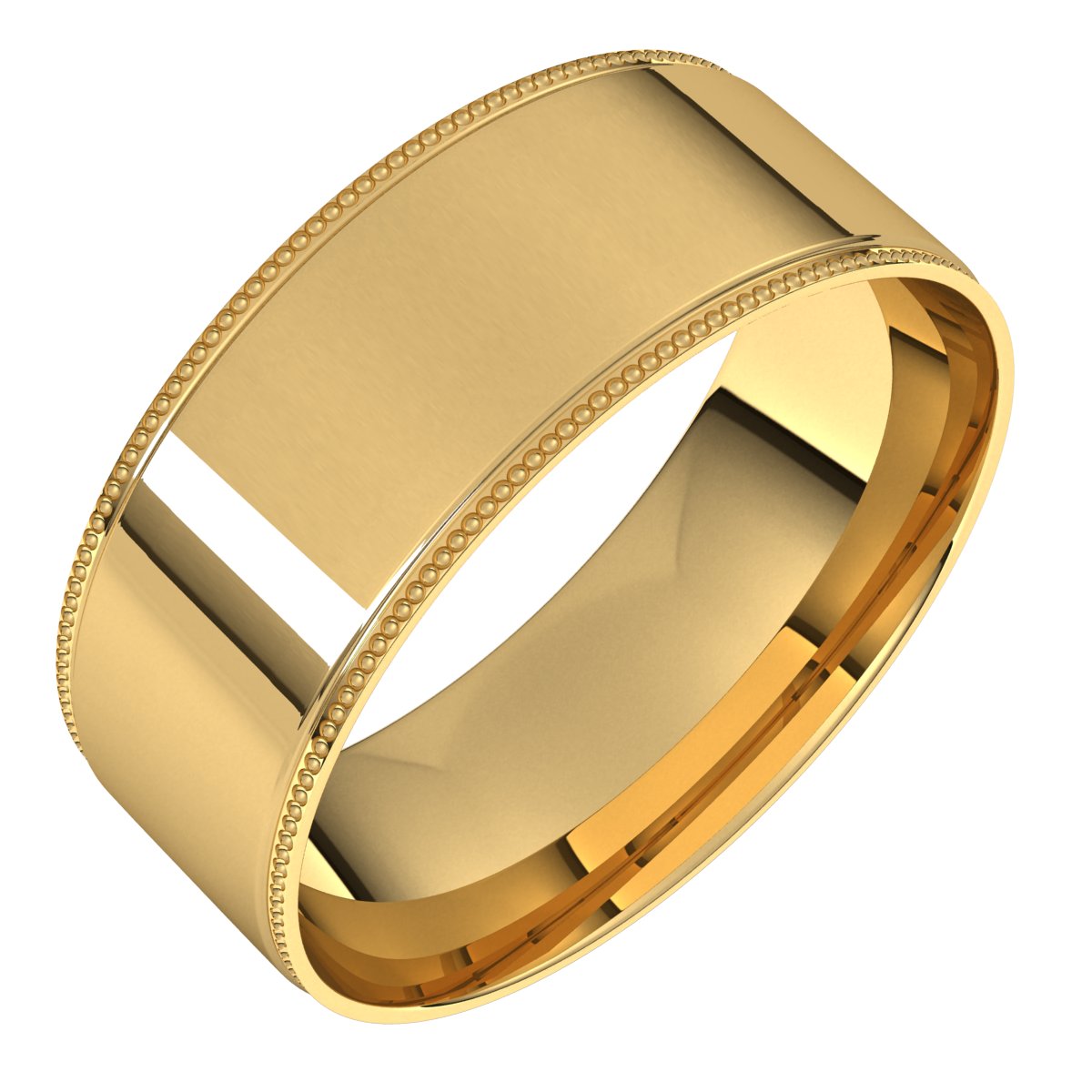 14K Yellow 7 mm Milgrain Stepped-Edge Comfort-Fit Flat Band Size 12.5