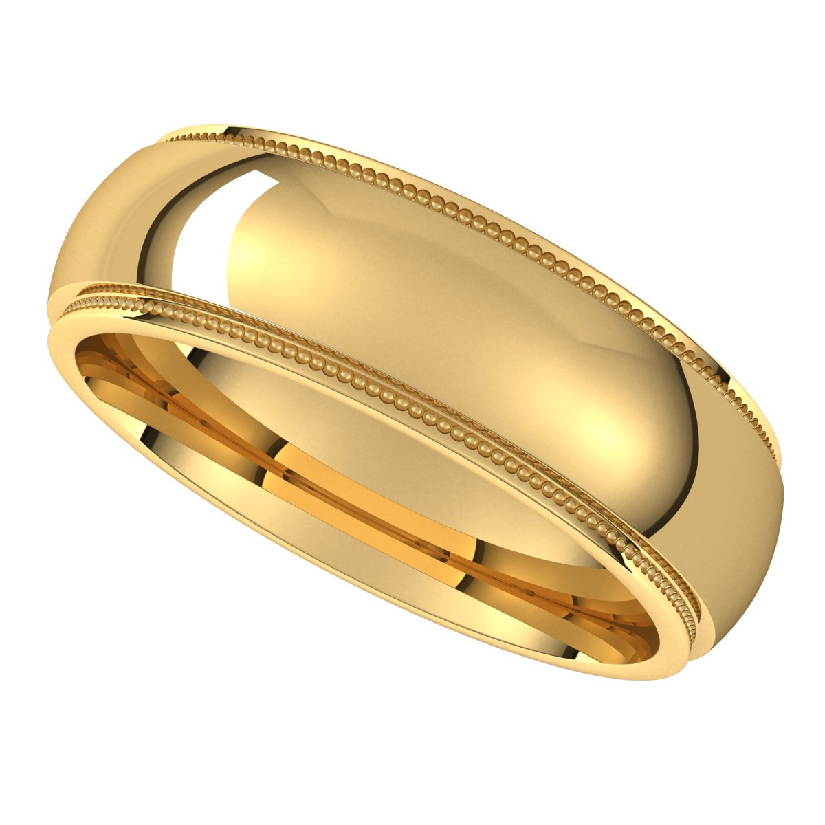 14K Yellow 6 mm Milgrain Stepped-Edge Half Round Band Size 10.5