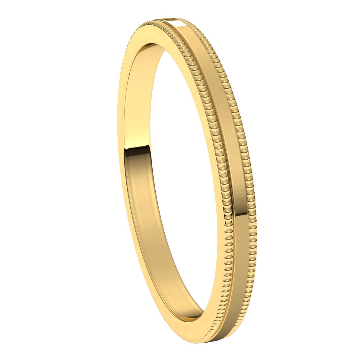 14K Yellow 2 mm Milgrain Flat Band Size 5.5