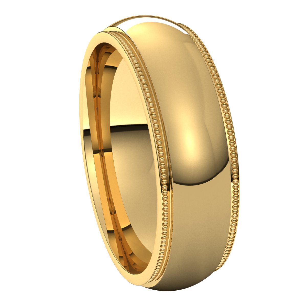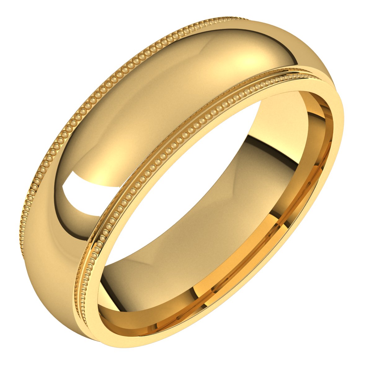 14K Yellow 6 mm Milgrain Stepped-Edge Half Round Band Size 7