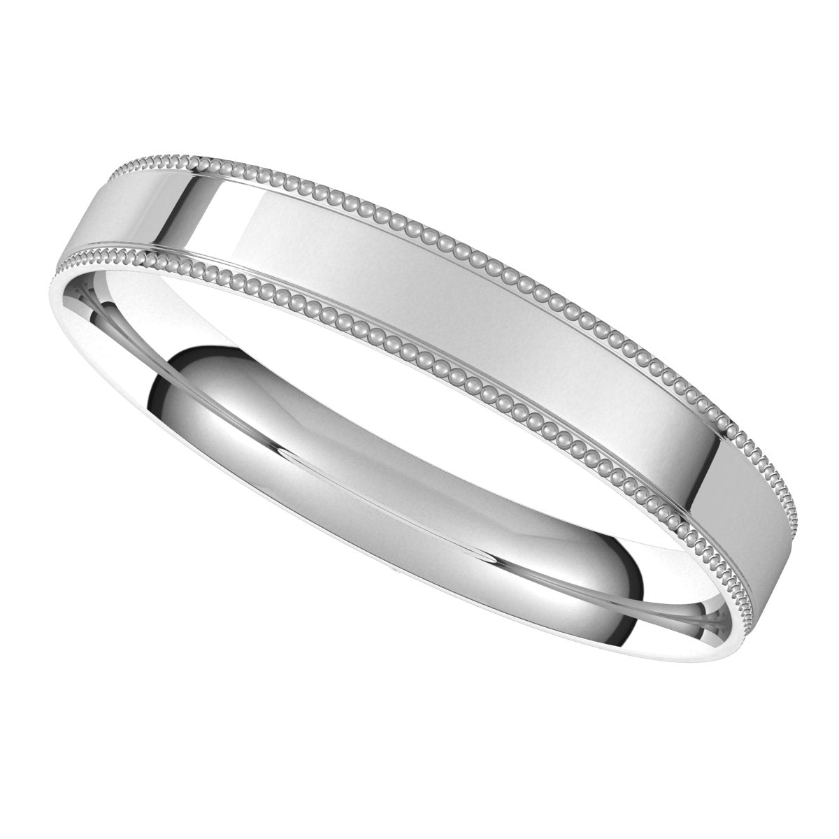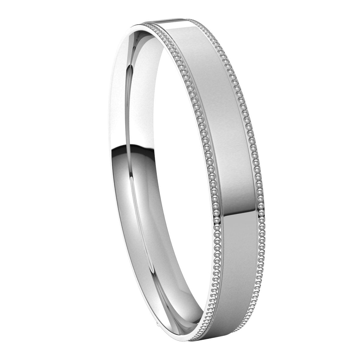 Platinum 4 mm Milgrain Stepped-Edge Comfort-Fit Flat Band Size 10