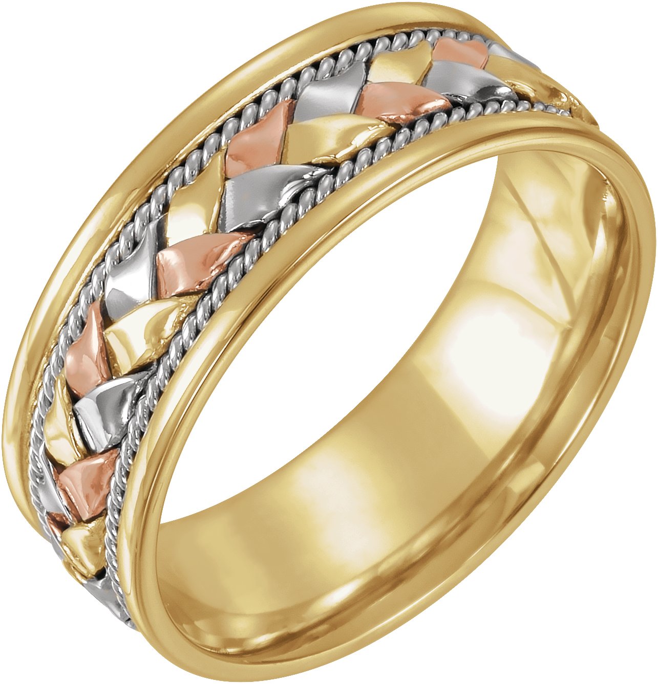 14K Yellow/White/Rose 8 mm Rope Hand-Woven Comfort-Fit Flat Band Size 6