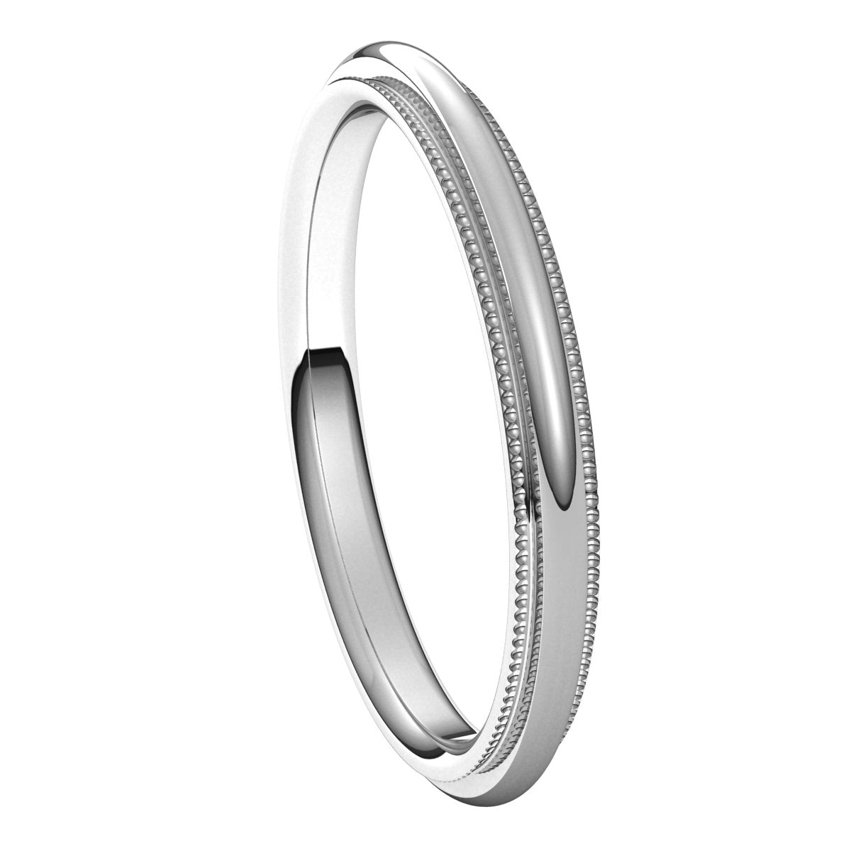 14K White 2 mm Milgrain Stepped-Edge Comfort-Fit Half Round Band Size 5.5