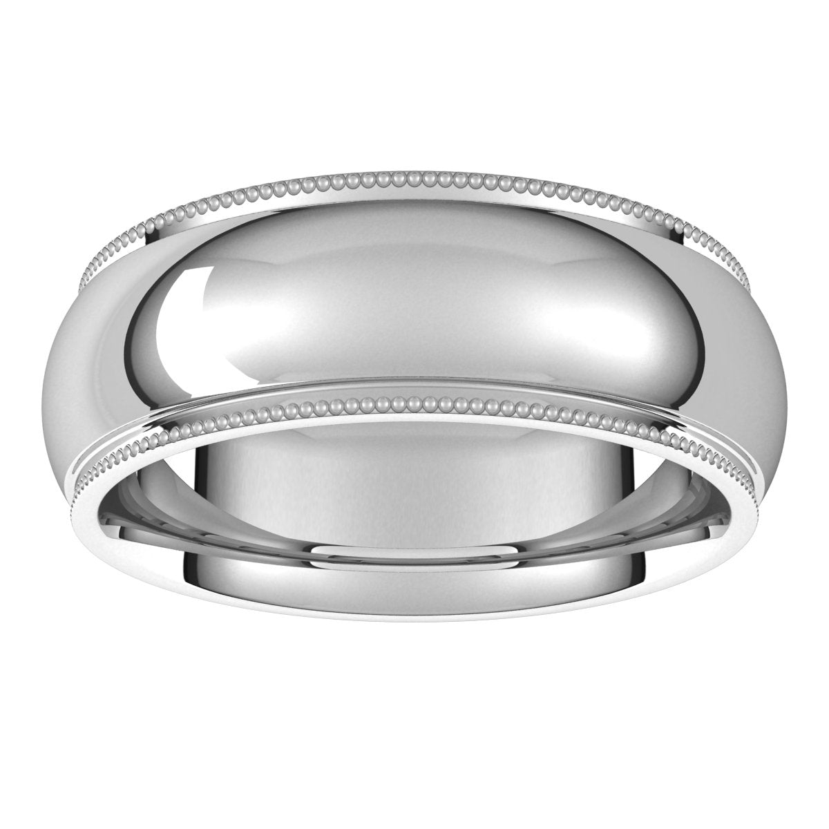 14K White 7 mm Milgrain Stepped-Edge Comfort-Fit Half Round Band Size 7.5