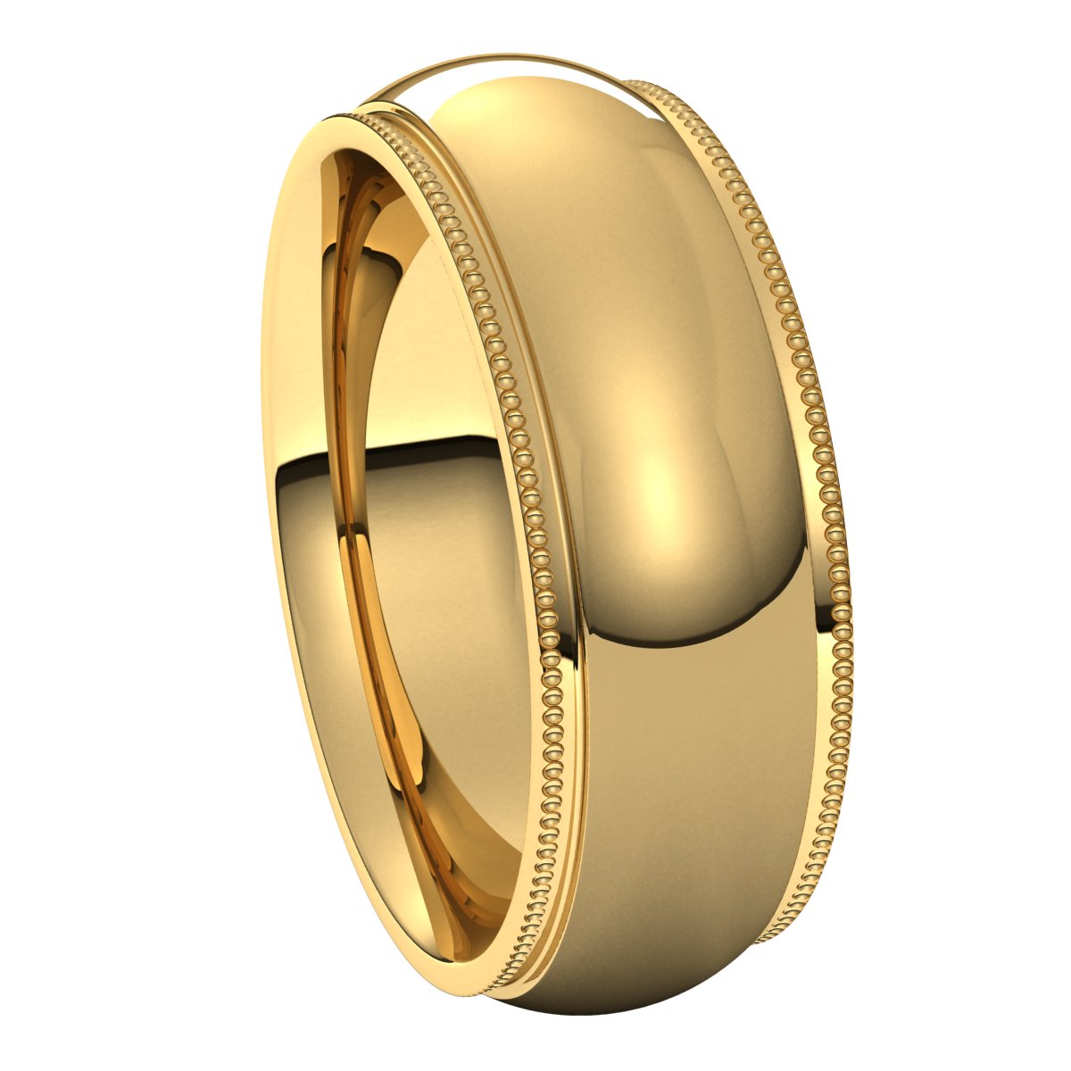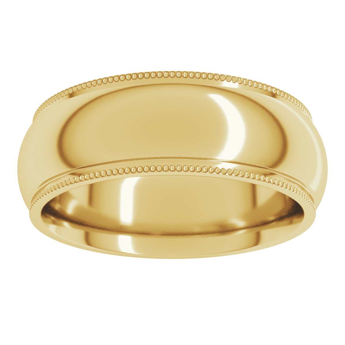 14K Yellow 7 mm Milgrain Stepped-Edge Comfort-Fit Half Round Band Size 8.5