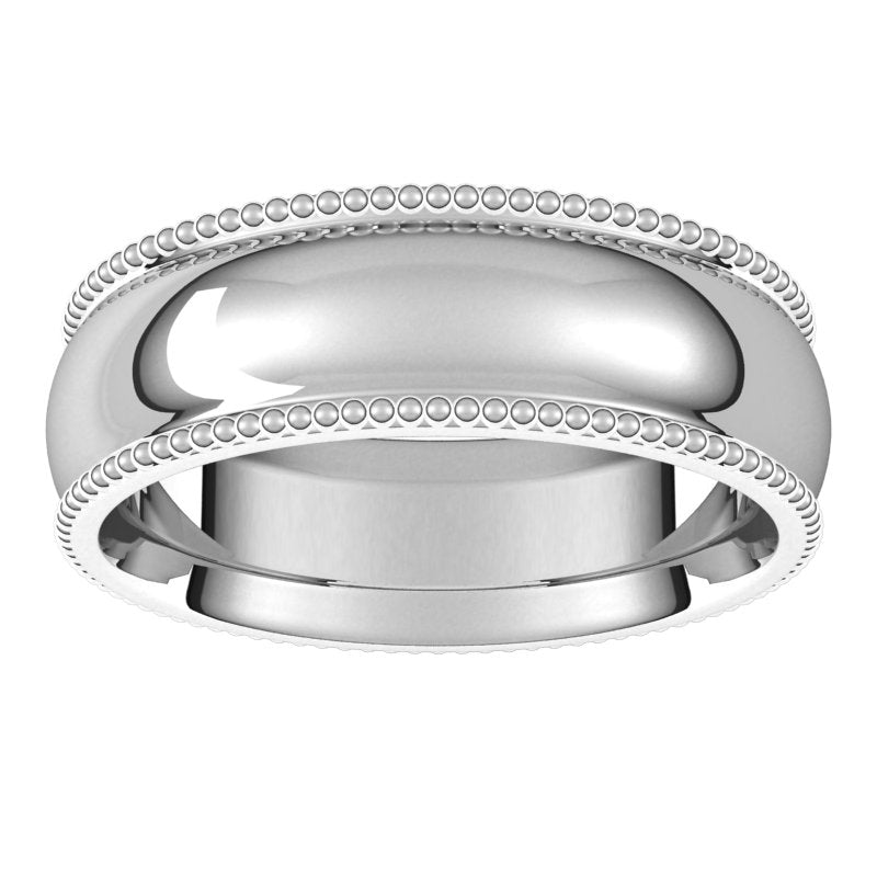14K White 6 mm Beaded Comfort-Fit Half Round Band Size 9.5