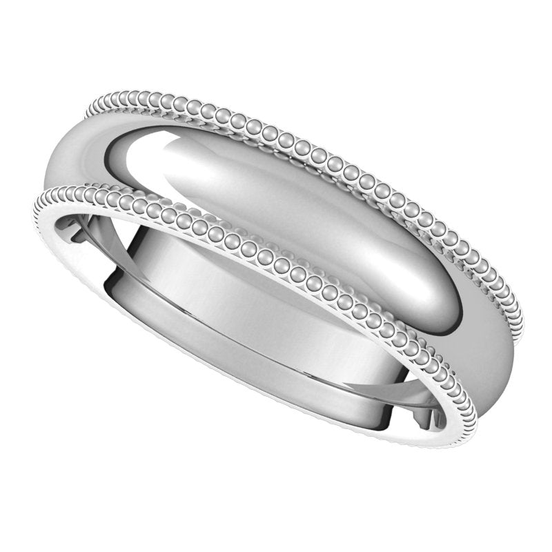Platinum 5 mm Beaded Comfort-Fit Half Round Band Size 9