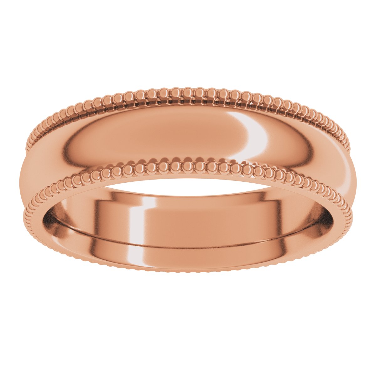 14K Rose 5 mm Beaded Comfort-Fit Half Round Band Size 9.5