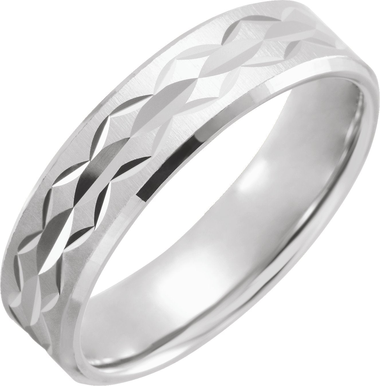 14K White 6 mm Beveled-Edge Faceted Comfort-Fit Half Round Band Size 10.5