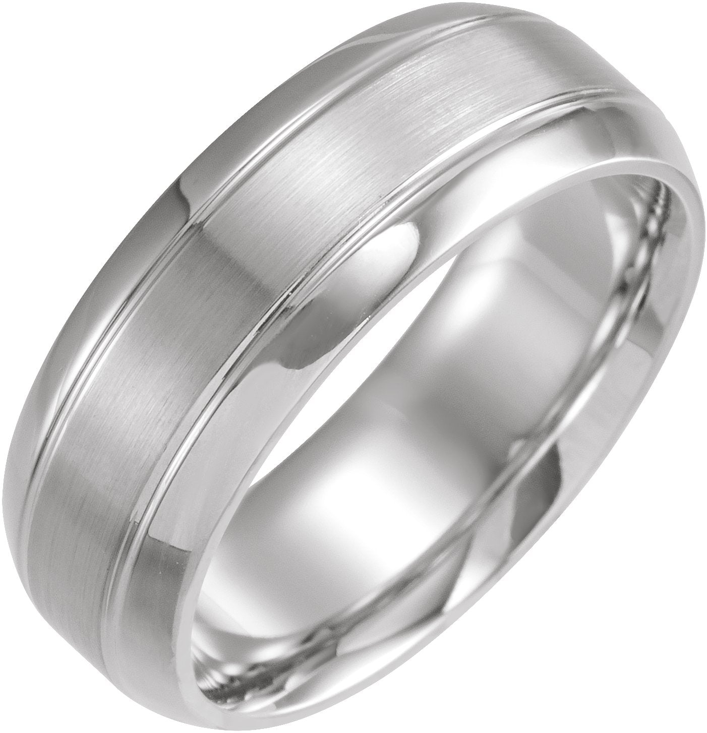 10K White 8 mm Beveled-Edge Grooved Comfort-Fit Half Round Band Size 9