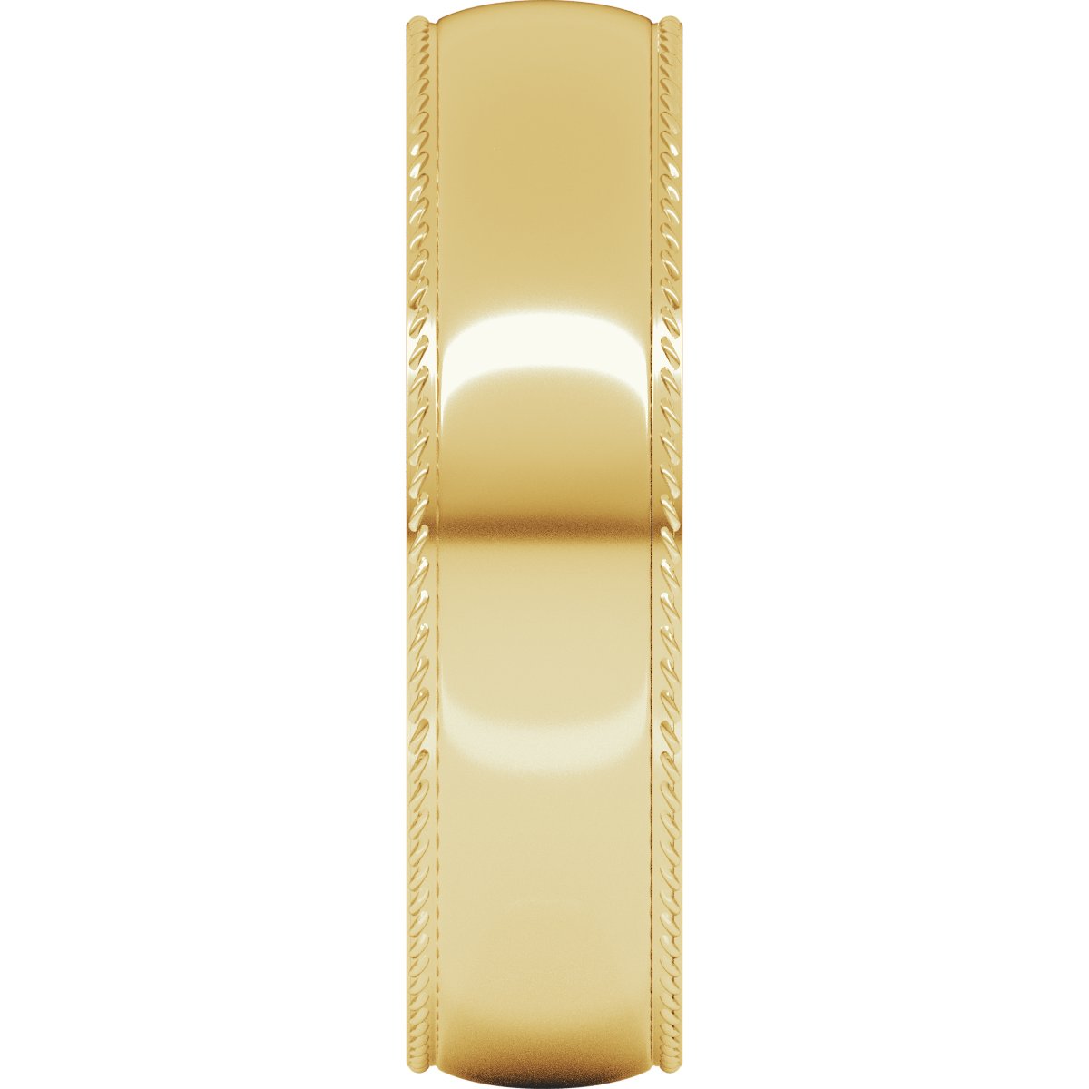 14K Yellow 6 mm Rope Comfort-Fit Half Round Band Size 9.5