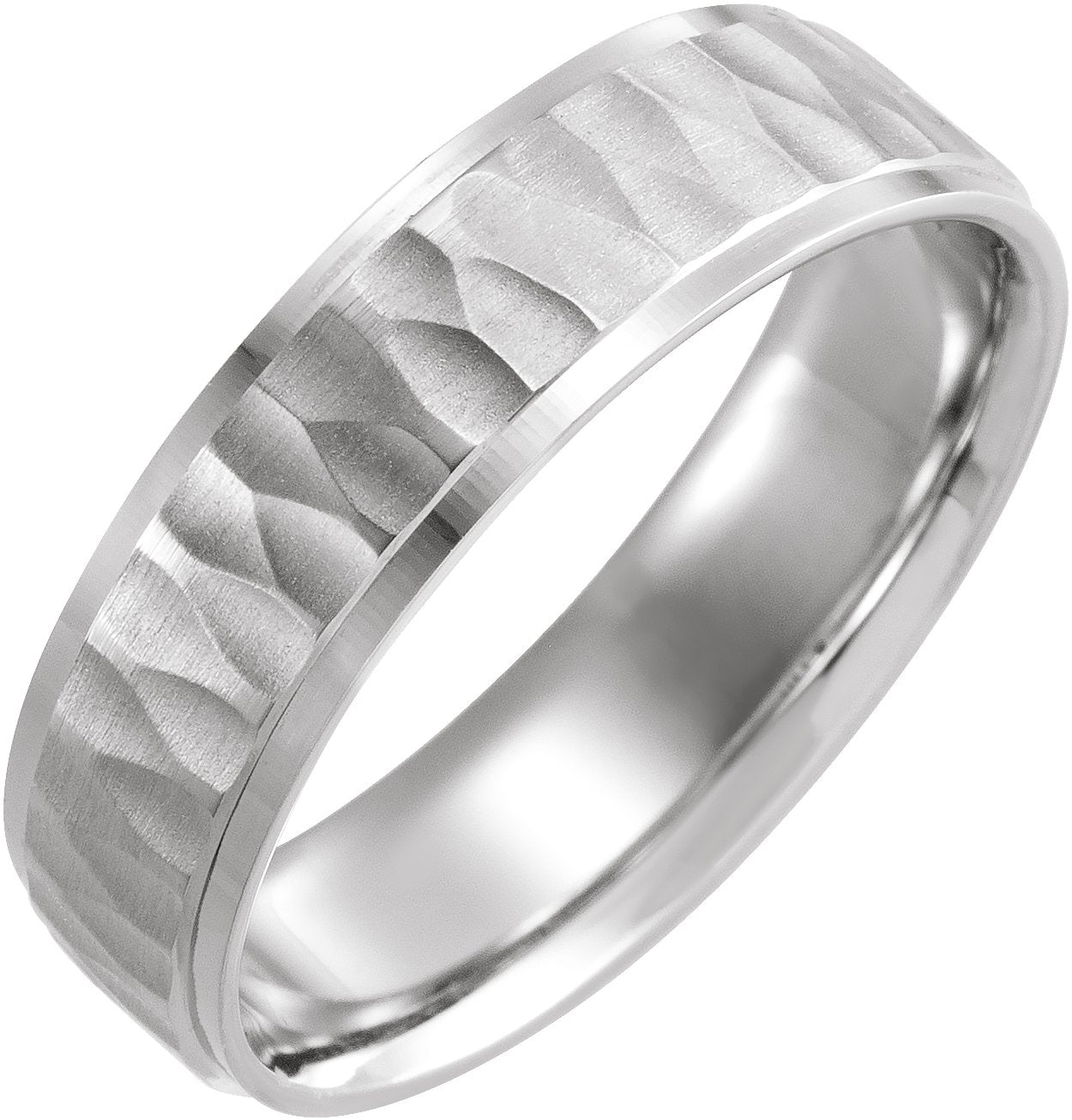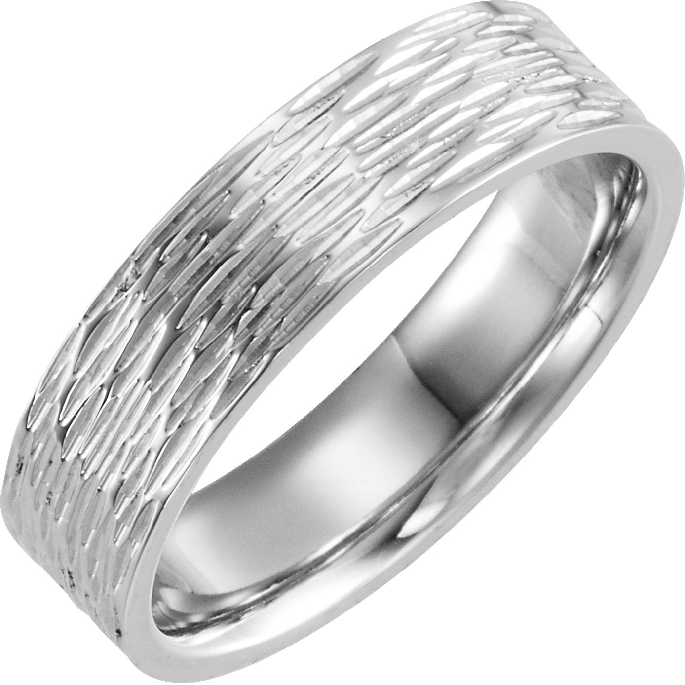 14K White 6 mm Tree Bark-Inspired Comfort-Fit Flat Band Size 8