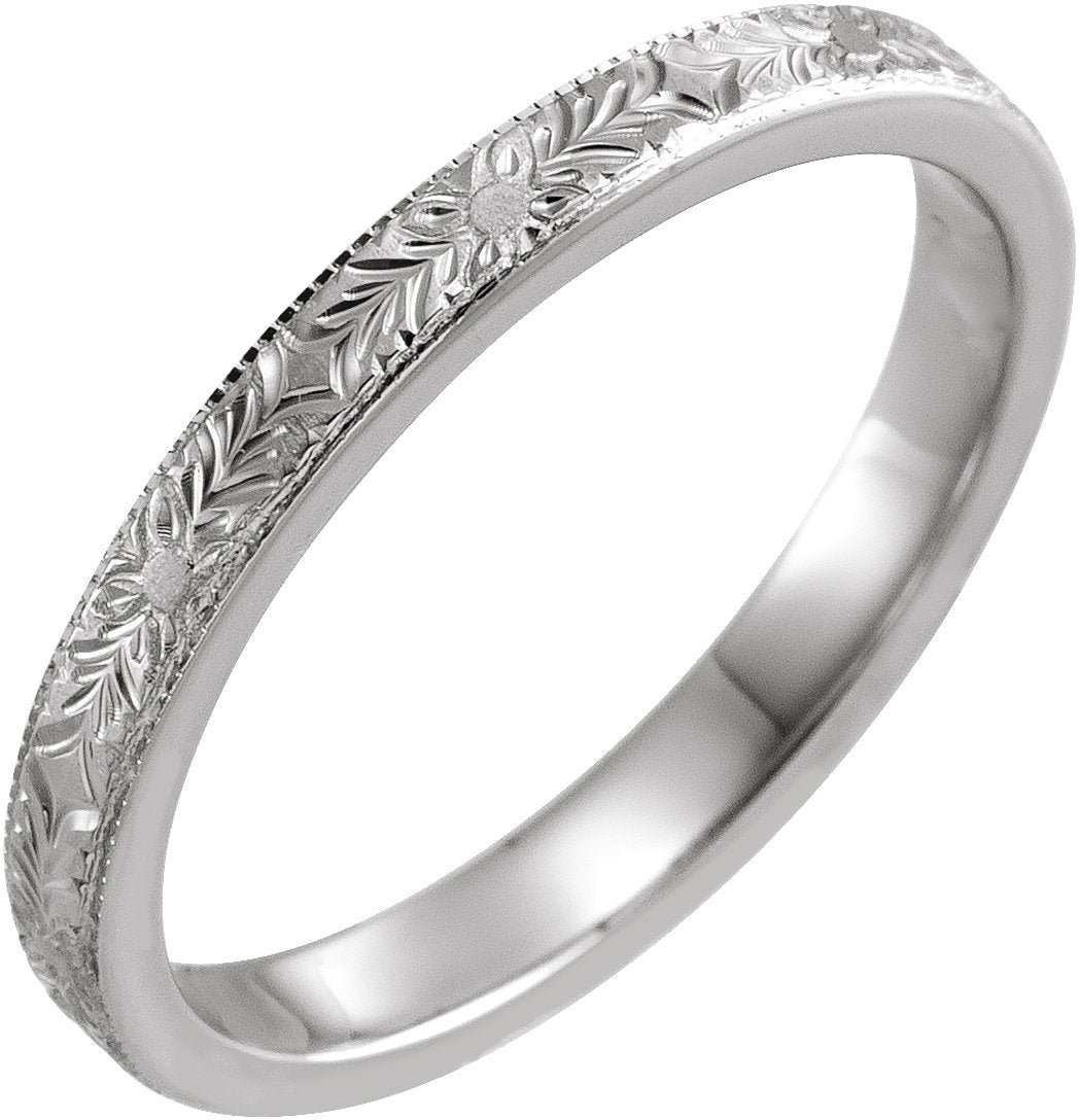 14K White 2.5 mm Floral Flat Band Size 5.5