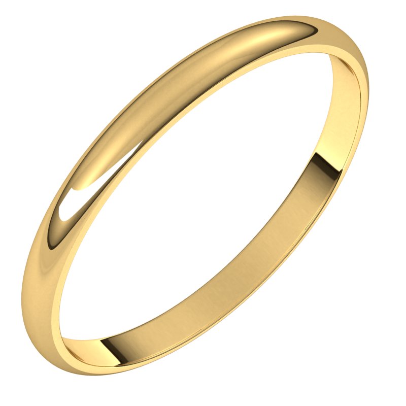 14K Yellow 2 mm Ultra-Lightweight Half Round Band Size 6.5