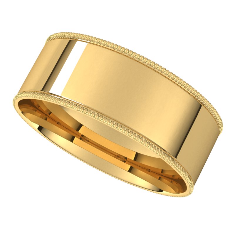 10K Yellow 8 mm Milgrain Comfort-Fit Flat Band Size 10.5