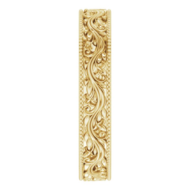 14K Yellow 4 mm Milgrain Edge Floral Flat Band Size 7