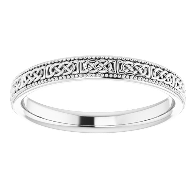 Sterling Silver 3 mm Milgrain Edge Celtic-Inspired Flat Band Size 8