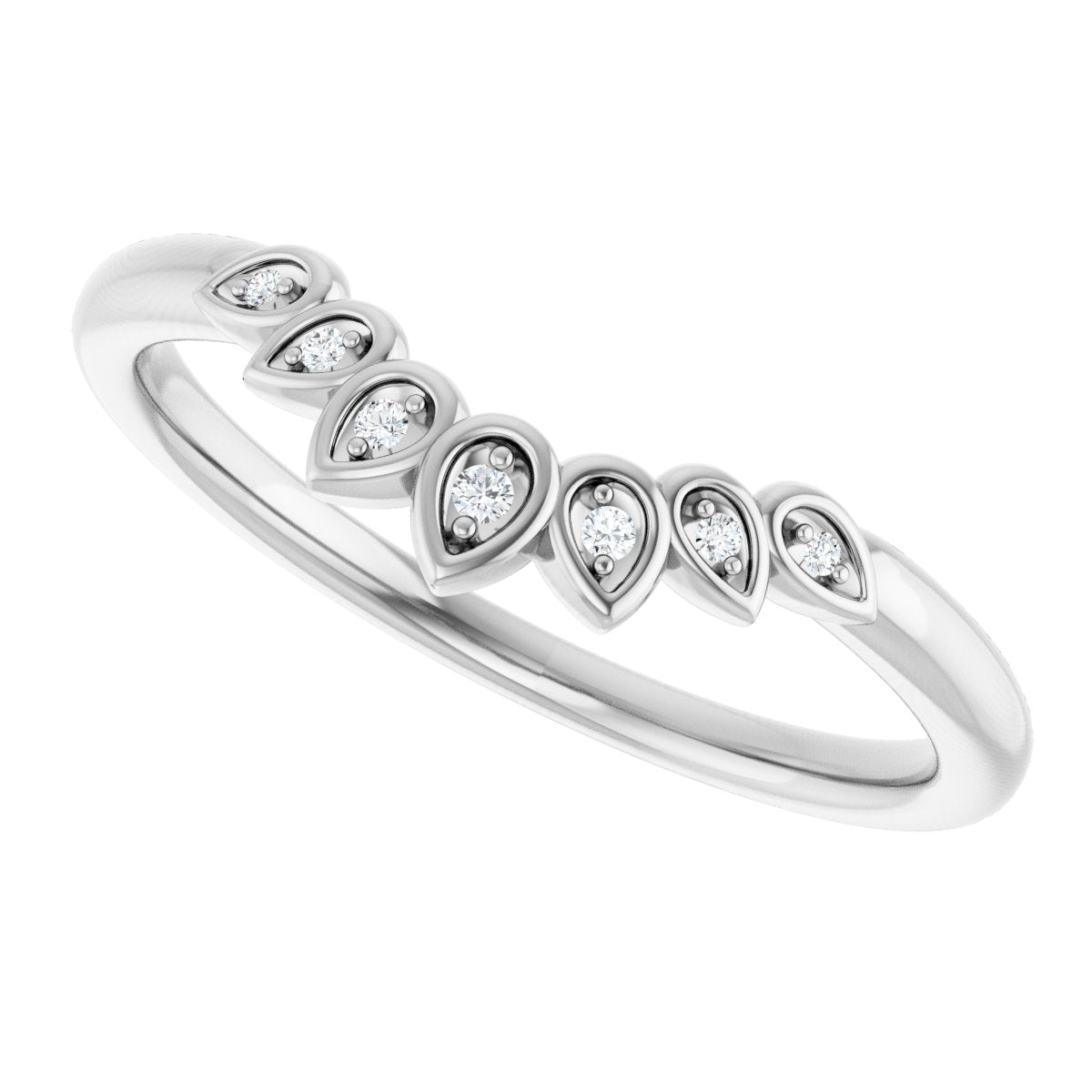 14K White .025 CTW Natural Diamond Floral Contour Band