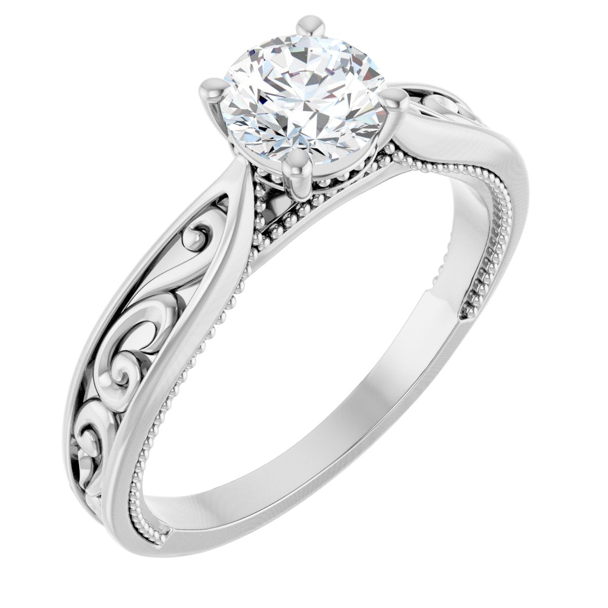 14K White 2.5 mm Floral Flat Band Size 7.5