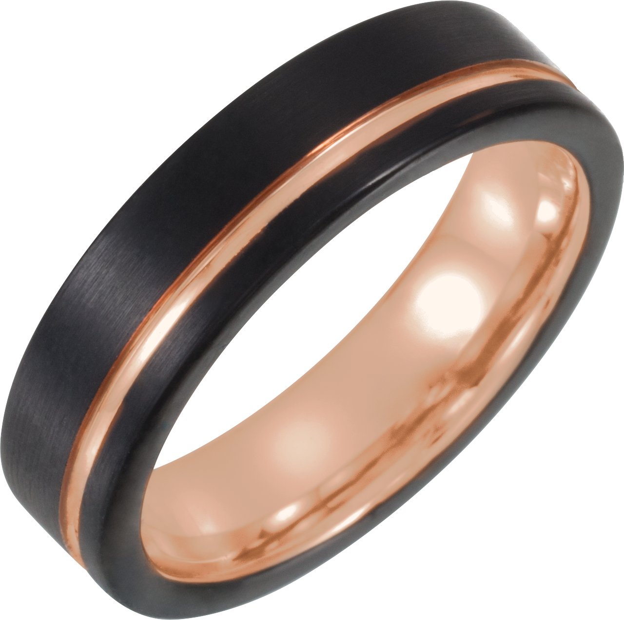 Black & 18K Rose Gold PVD Tungsten 6 mm Grooved Comfort-Fit Band Size 13