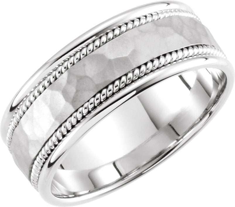 14K White 8 mm Rope Edge Comfort-Fit Flat Band Size 9
