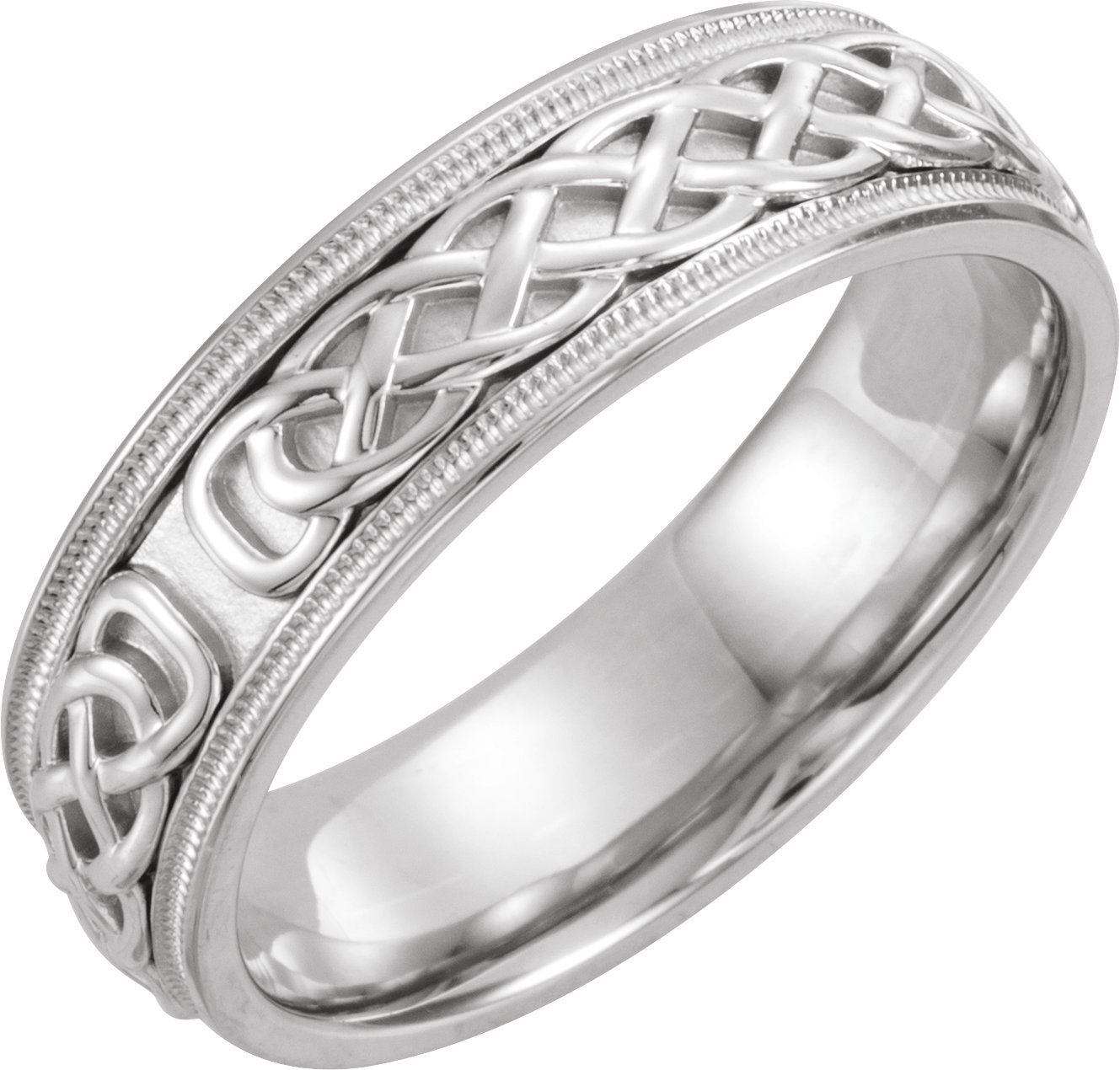 14K White 7 mm Milgrain Celtic-Inspired Band Size 10