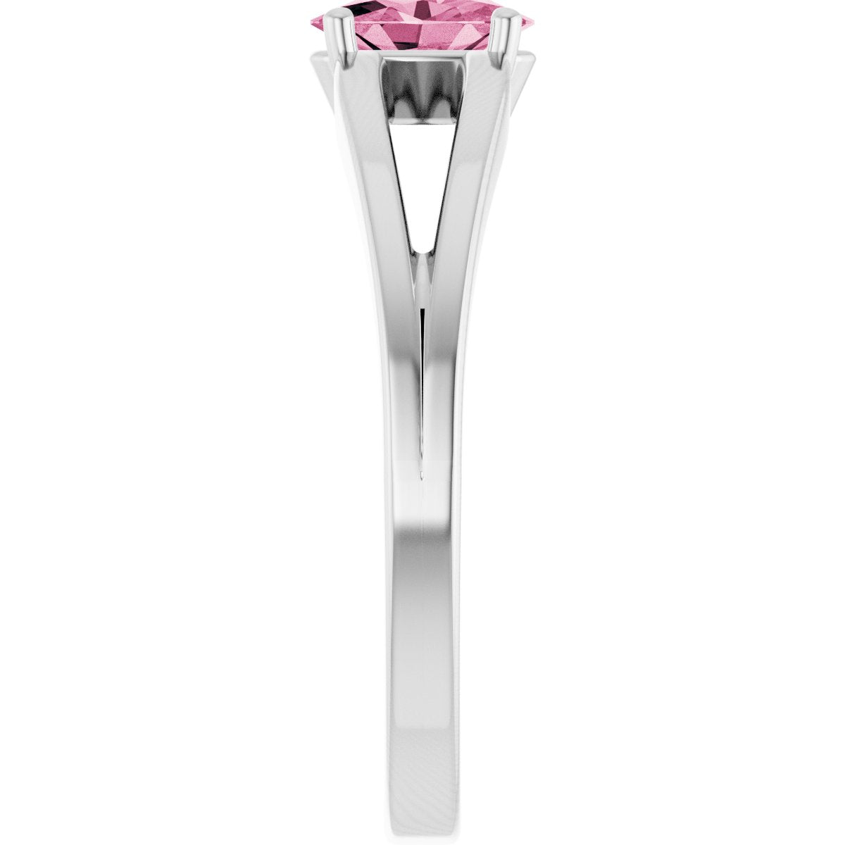 14K White Natural Pink Tourmaline Youth Solitaire Ring