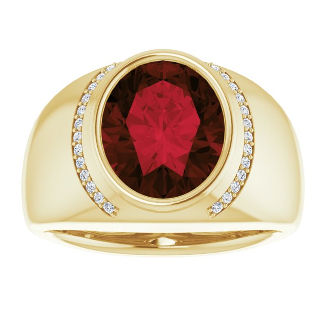 14K Yellow Natural Mozambique Garnet & 1/8 CTW Natural Diamond Ring
