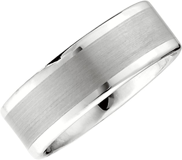 White Tungsten Inlay 8 mm Comfort-Fit Flat Band Size 7