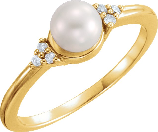 14K Yellow 5.5-6 mm Cultured Freshwater White Pearl & .06 CTW Natural Diamond Ring