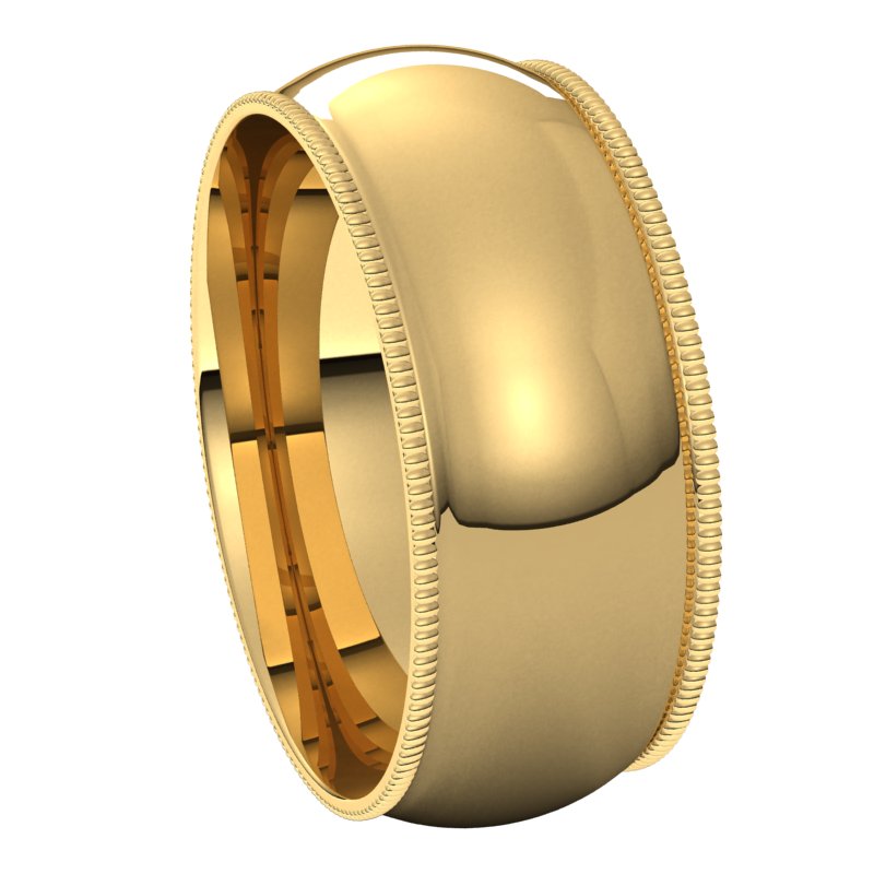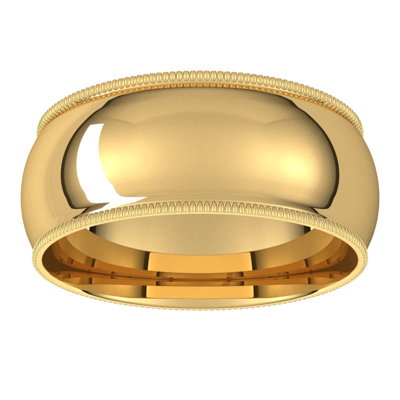 14K Yellow 8 mm Milgrain Comfort-Fit Half Round Band Size 9