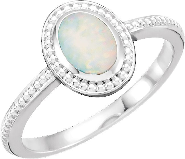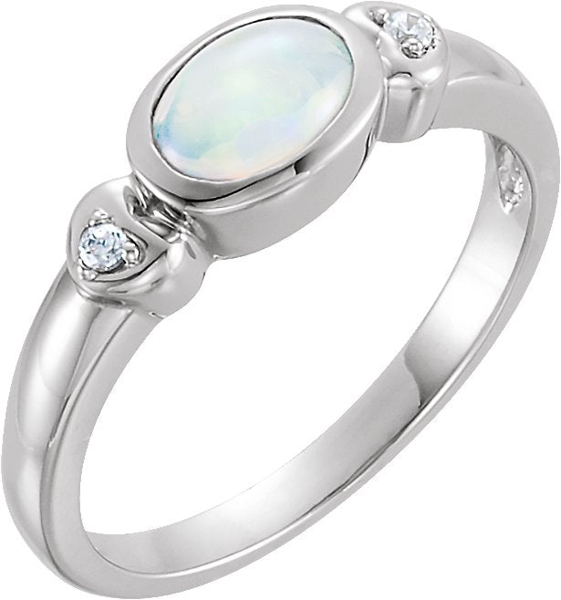 14K White Natural White Opal & .03 CTW Natural Diamond Ring
