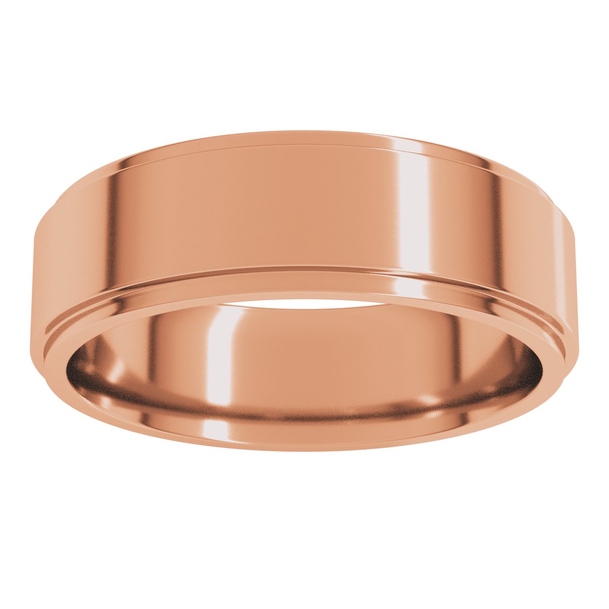 14K Rose 6 mm Stepped-Edge Comfort-Fit Flat Band Size 6.5