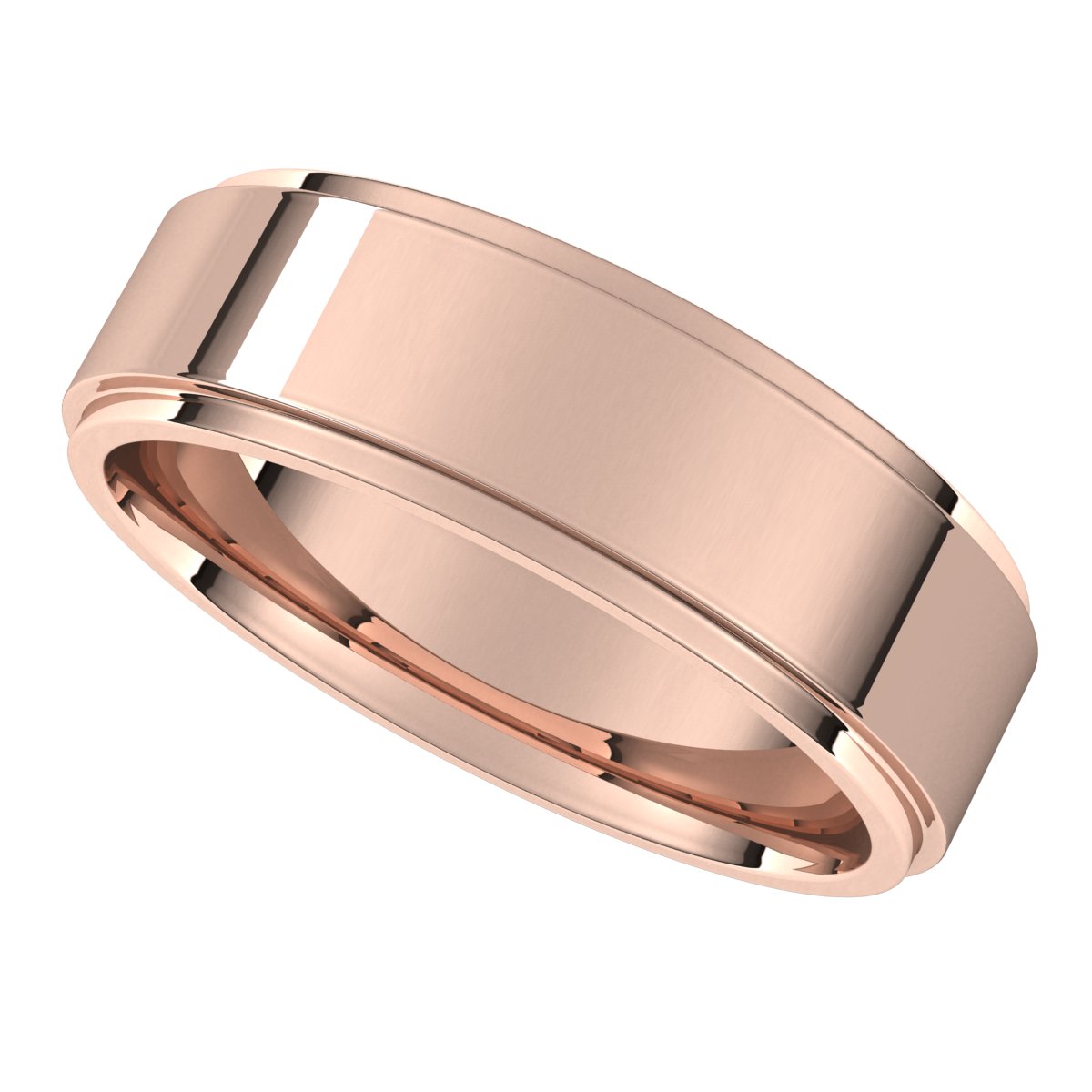 14K Rose 6 mm Stepped-Edge Comfort-Fit Flat Band Size 9