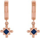 14K Rose Lab-Grown Blue Sapphire Beaded Bezel-Set Hoop Earrings