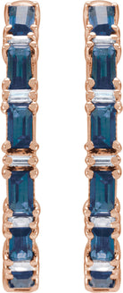 14K Rose Natural Blue Sapphire & 1 1/4 CTW Natural Diamond Hoop Earrings