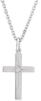 14K White .01 CT Natural Diamond Cross 18" Necklace