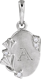 14K White .025 CTW Natural Diamond Engravable Floral Pendant