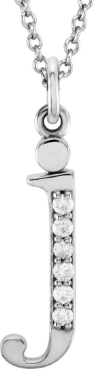 14K White .025 CTW Natural Diamond Lowercase Initial J 16" Necklace