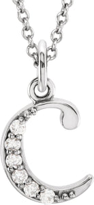 14K White .03 CTW Natural Diamond Lowercase Initial C 16" Necklace