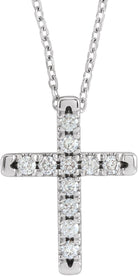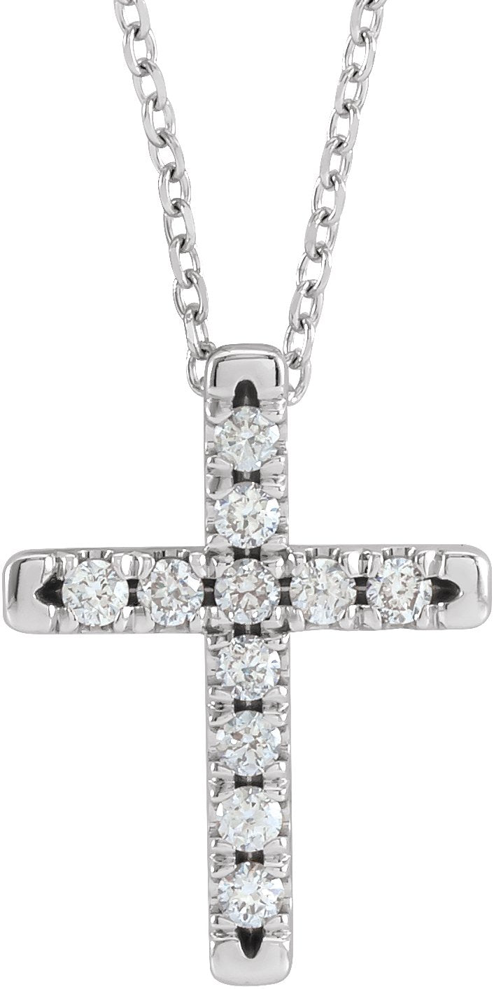 14K White 1/5 CTW Lab-Grown Diamond French-Set Cross 16-18" Necklace