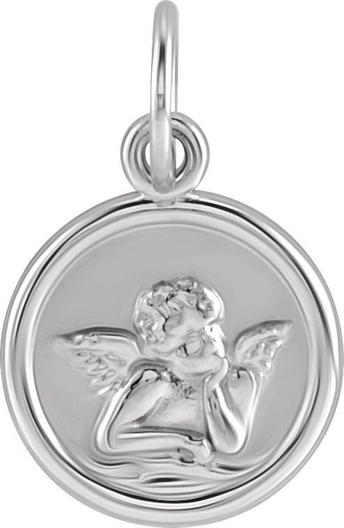14K White 12 mm Cherub Angel Pendant