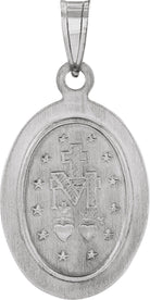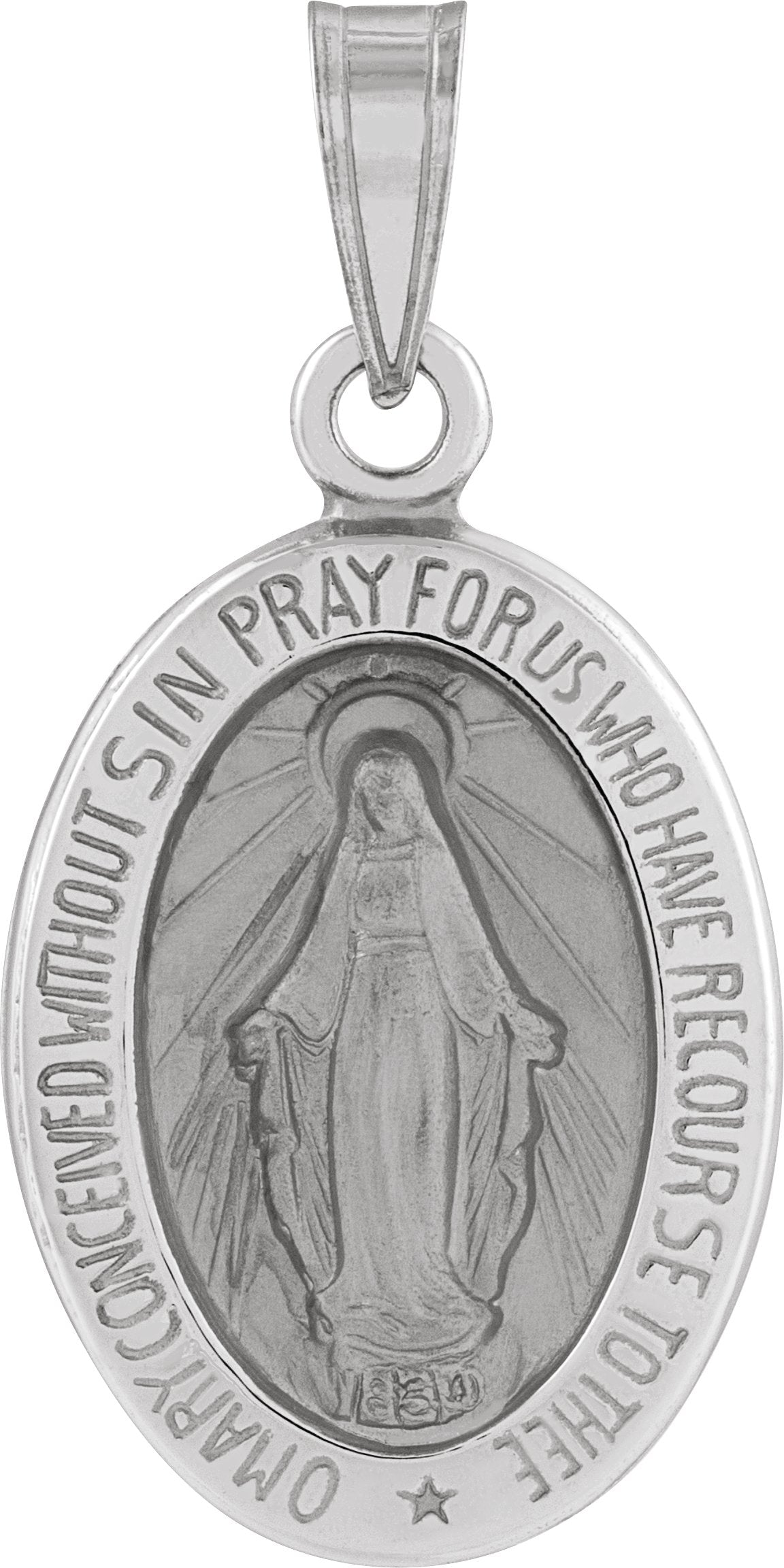 14K White 15x11.5 mm Oval Hollow Miraculous Medal
