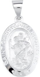 14K White 19x13.5 mm Oval Hollow St. Christopher Medal