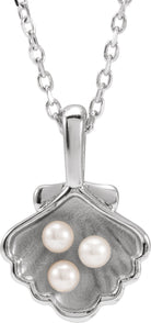 14K White 3-Stone Cultured White Seed Pearl Family Shell 16-18" Necklace