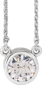 14K White 6.5 mm Round Cubic Zirconia Bezel-Set Solitaire 18" Necklace