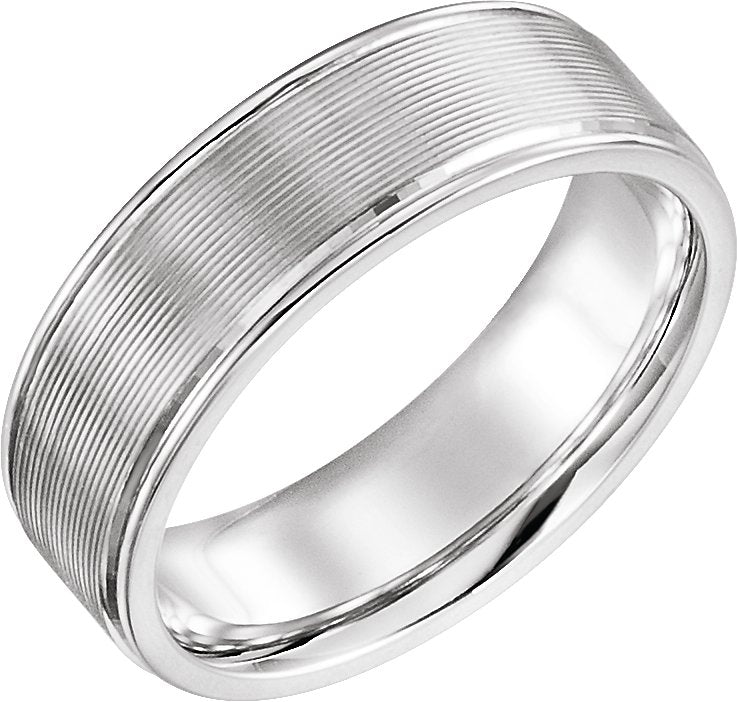 14K White 6 mm Stepped-Edge Grooved Comfort-Fit Flat Band Size 7.5