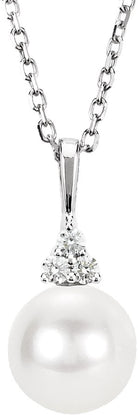 • Description: Cultured White Freshwater Pearl And .05 CTW Natural Diamond Necklace